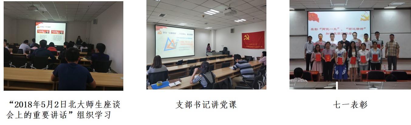 通过党员的示范引领作用,营造“学业争先、行为争范,让优秀成为习惯,让先进成为个性”的良好风气。一年来,生物党支部在科教前沿党总支“七一”表彰中荣获“优秀党支部”,以综合最高分获得了年底党支部述职考核的优秀;支部一名积极分子获得2018学年国家奖学金,一位党员获得西安交通大学“学术之星”称号,两位党员毕业留校任职,两位党员获得西安交通大学优秀研究生,两位党员在“七一”表彰中被评为优秀党员。